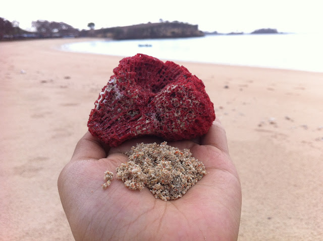 Terumbu karang berwarna merah adalah penyebab pasir di pantai ini berwarna pink. Pantai ini masih sepi dari jamahan wisatawan, sebab saya hanya melihat beberapa orang turis asing baru saja tiba di pantai ini dengan menggunakan motor. Ya, akses menuju pantai ini bisa juga melalui darat dari pulau Lombok. Pantai pink ini begitu damai, sebuah keadaan hening yang menyenangkan. Namun sayang kami tak sempat melihat biota laut di dalamnya sebab hujan turun dengan segera.