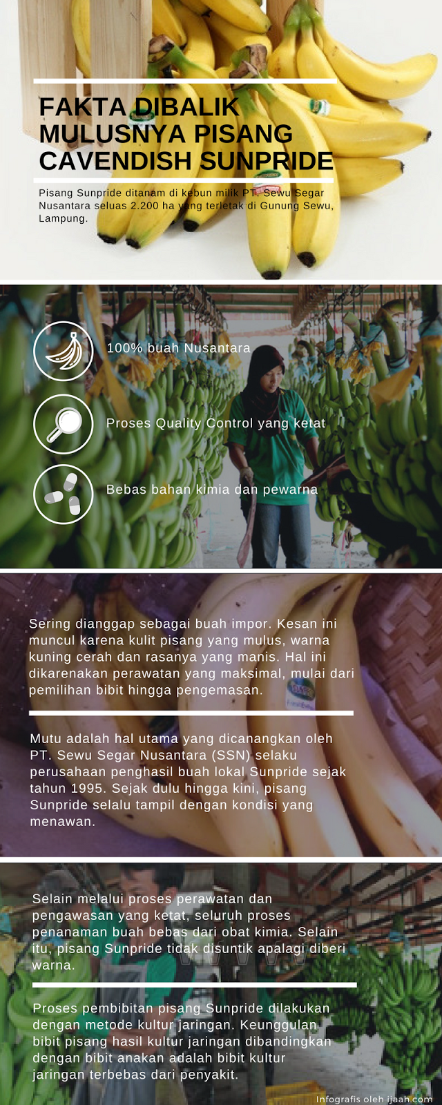 Saat kecil dulu, ibu ayah mengatakan bahwa pisang yang bagus itu adalah pisang Sunpride. Dan aku sangat senang sekali saat keduanya membelikan pisang kuning yang cantik itu. Saat itu, aku dan bahkan kedua orang tuaku menyangka bahwa pisang Sunpride ini adalah pisang impor karena warnanya yang cantik dan nikmat rasanya. Tapi ternyata anggapanku selama ini salah.